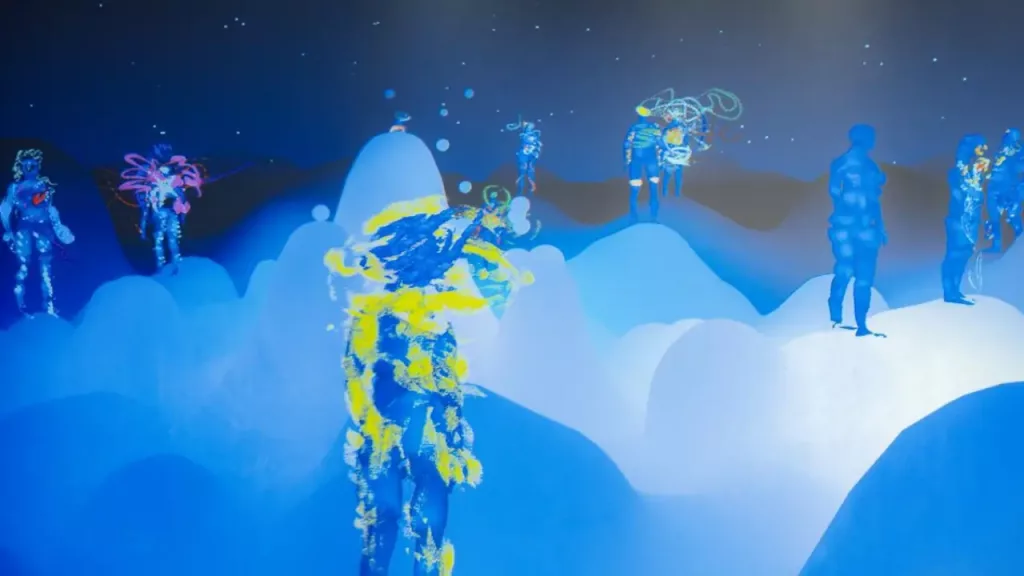 A second pillar is community. Leigh returns to the idea of gathering as a baseline requirement—even when an experience seems individual. She talks about XR as something that can produce intimacy without isolation, precisely because it can generate traces that become shareable. In the case of SOUL PAINT, for instance, the experience may begin as a private act of expression, but it is designed to leave a visible footprint—something that can be displayed, revisited, and talked about. When the outputs live on a media wall, people come back with friends or family to show what they made, to explain a mood, to externalize an interior state. In that sense, XR becomes a social surface: it gives the emotional life of visitors a form that can circulate.